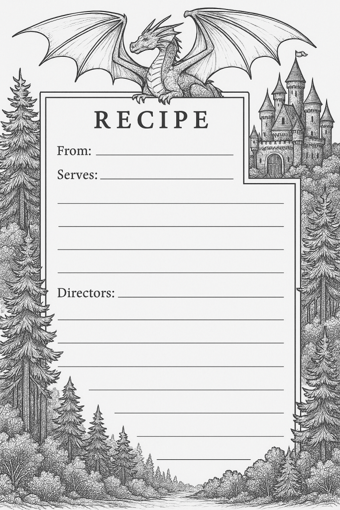 I took my 35 years as a chef and combined it with something I genuinely love — fantasy. I’ve always enjoyed fantasy stories: elves, dragons, ogres, imagined worlds full of creativity. That became the visual foundation. Then I layered in something deeply practical — recipes. Not polished cookbook entries, but real, handwritten, go-to favorites meant to be used, written in, and lived with.