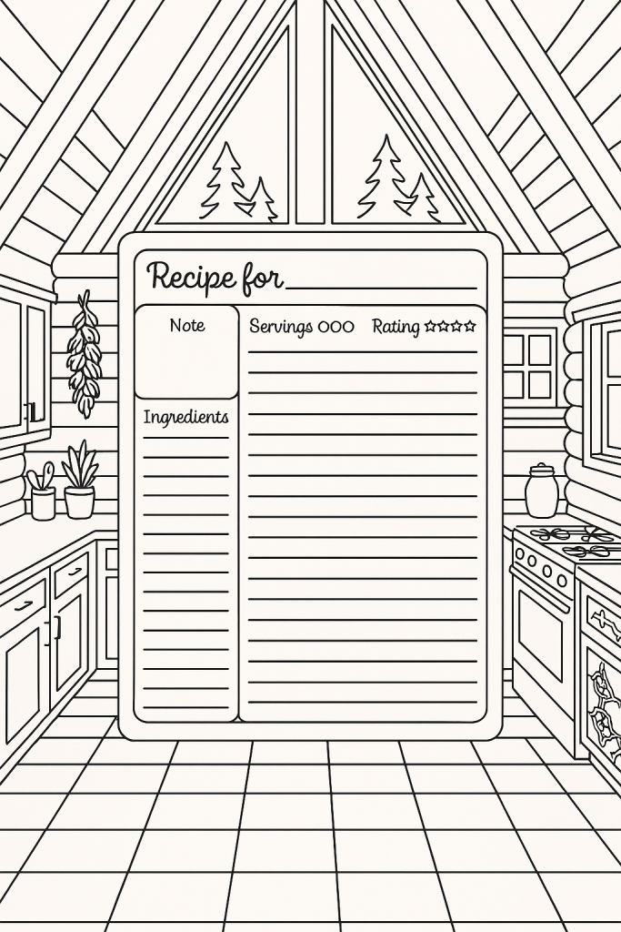 From the cover layout to the interior design, this journal really came together the way I hoped it would. The pages are filled with kitchen-themed coloring artwork, and more importantly, the recipe card space is large and usable. There’s plenty of room for ingredients and directions — which was a lesson learned early on and something I’ve really honed in on with this book.